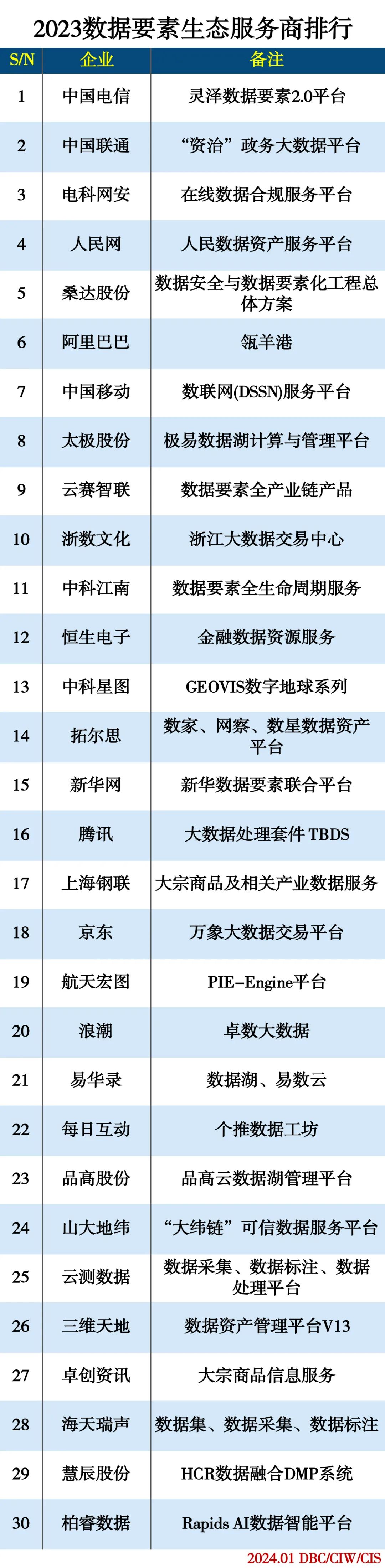 2023数据要素生态服务商排行