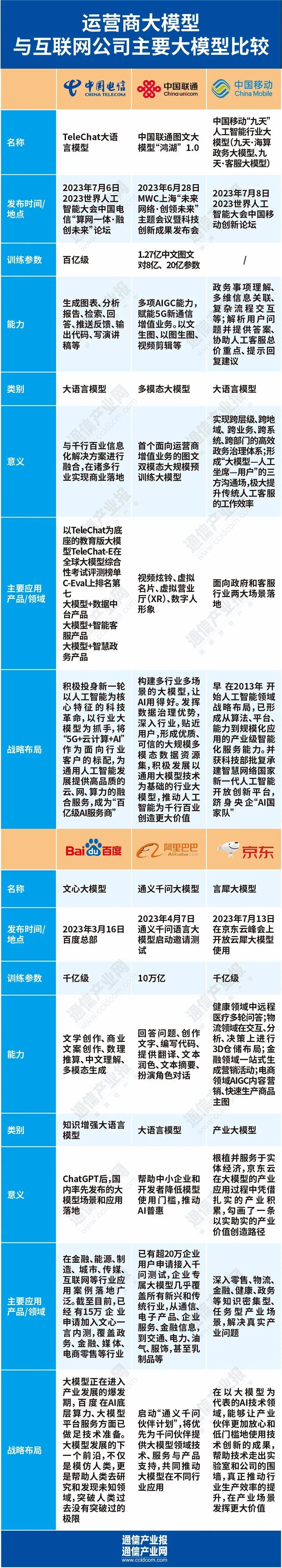 对于三大运营商目前发布的大模型产品的异同,目前三大运营商发布的大模型相同之处,都是从需求出发,以特定的应用场景和行业需求来牵引大模型开发和训练。