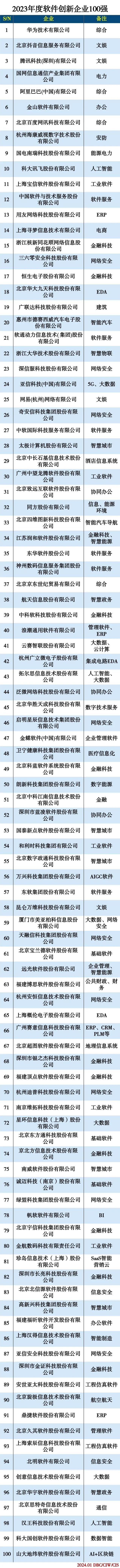 2023年度软件创新企业100强