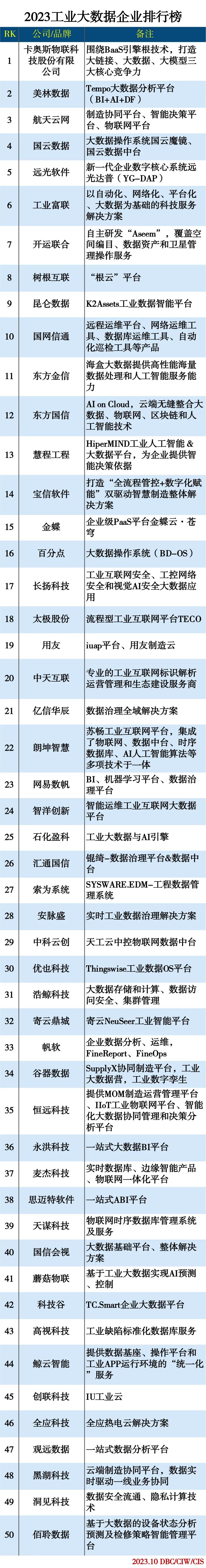 2023工业大数据企业排行榜