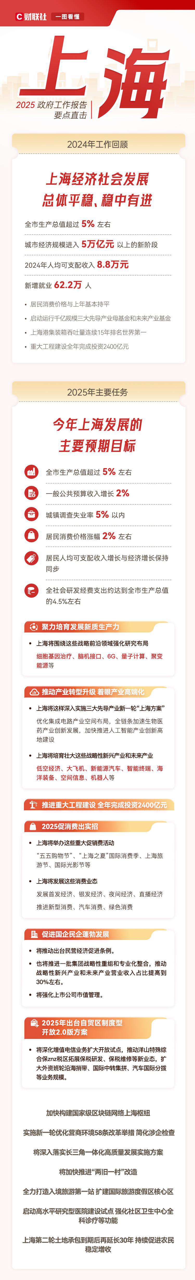 2025年上海市政府工作报告 2025-01-21 15:47:01.0 政策规划 上海 1月15日上午,上海市第十六届人民代表大会第三次会议在上海世博中心开幕。上海市市长龚正向市第十六届人大三次会议作政府工作报告。 附件:2025年上海市政府工作报告.docx