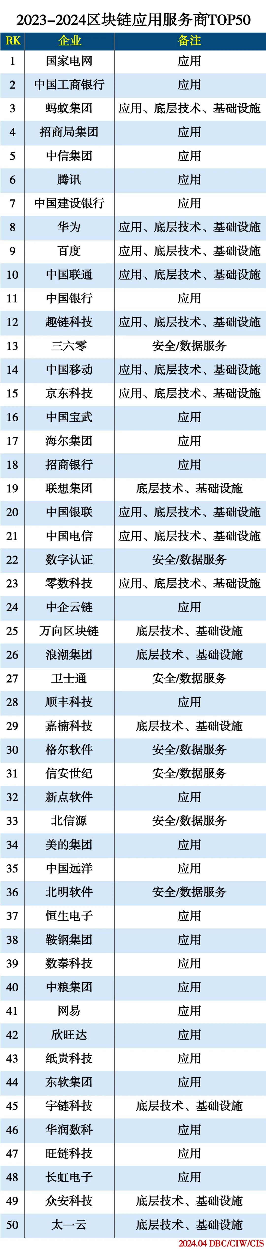 2023-2024区块链应用服务商排行