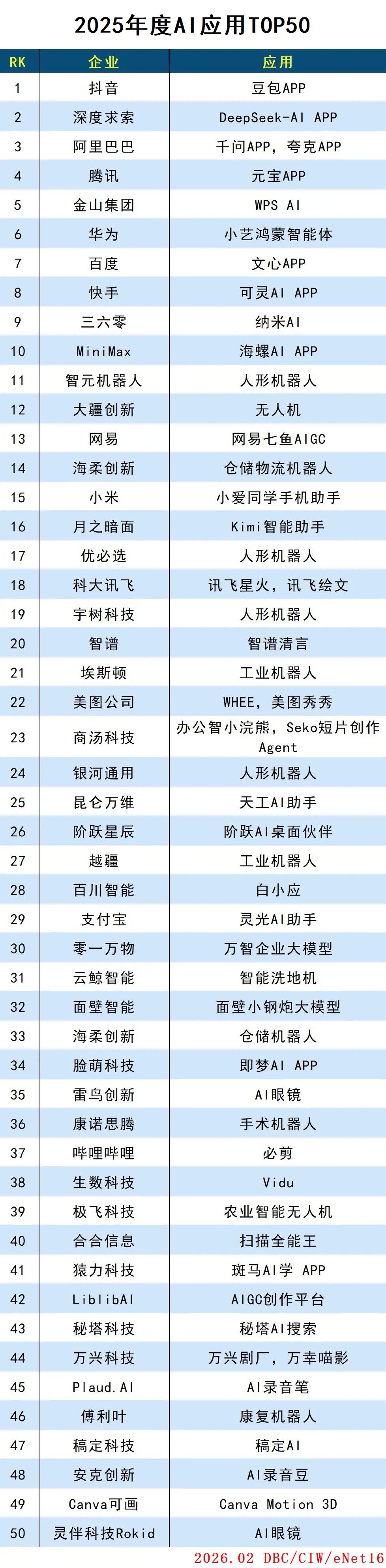 2025年度AI应用TOP50