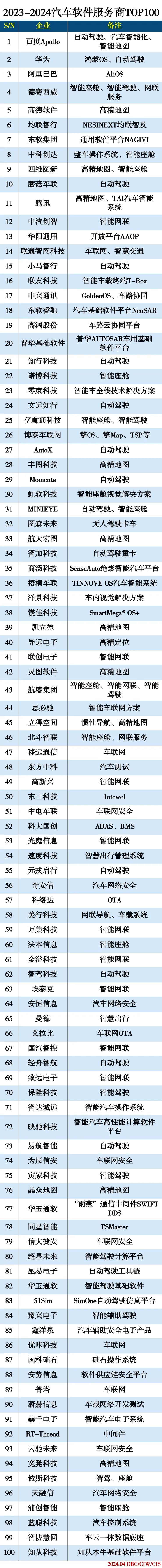 2023-2024汽车软件服务商TOP100