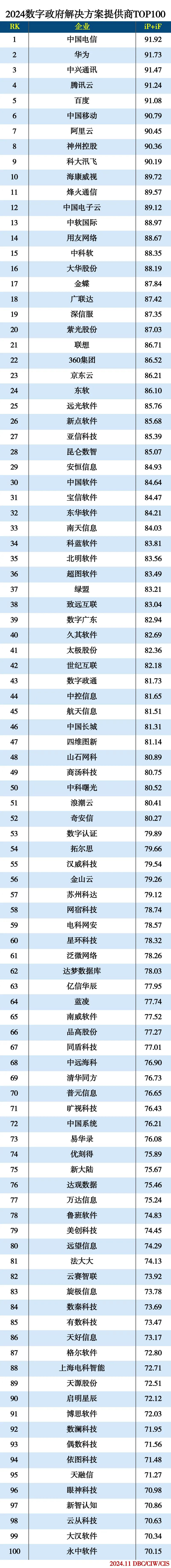 2024数字政府解决方案提供商TOP100