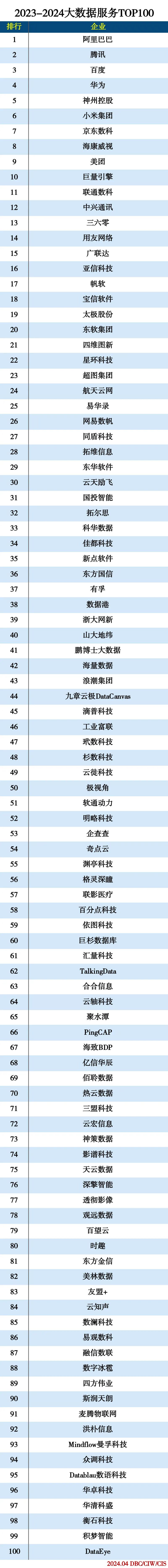 2023-2024大数据服务TOP100