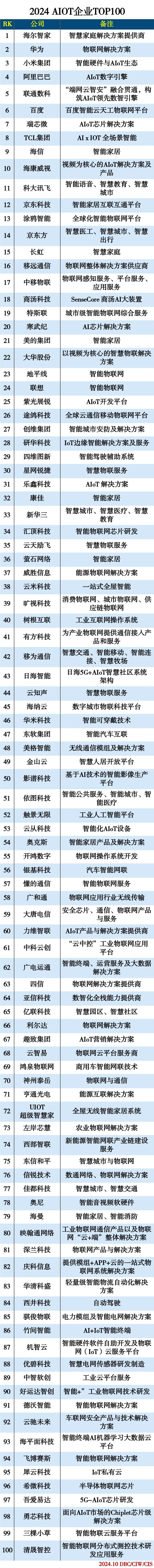 2024AIOT企业TOP100